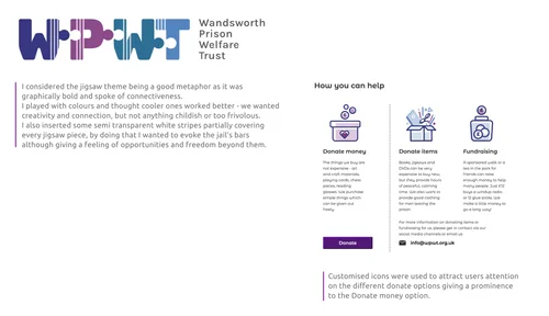To support the creation of a brand new charity - the Wandsworth Prison Welfare Trust by creating a new logo and a website to encourage people to donate money or items for prisoners through the website.